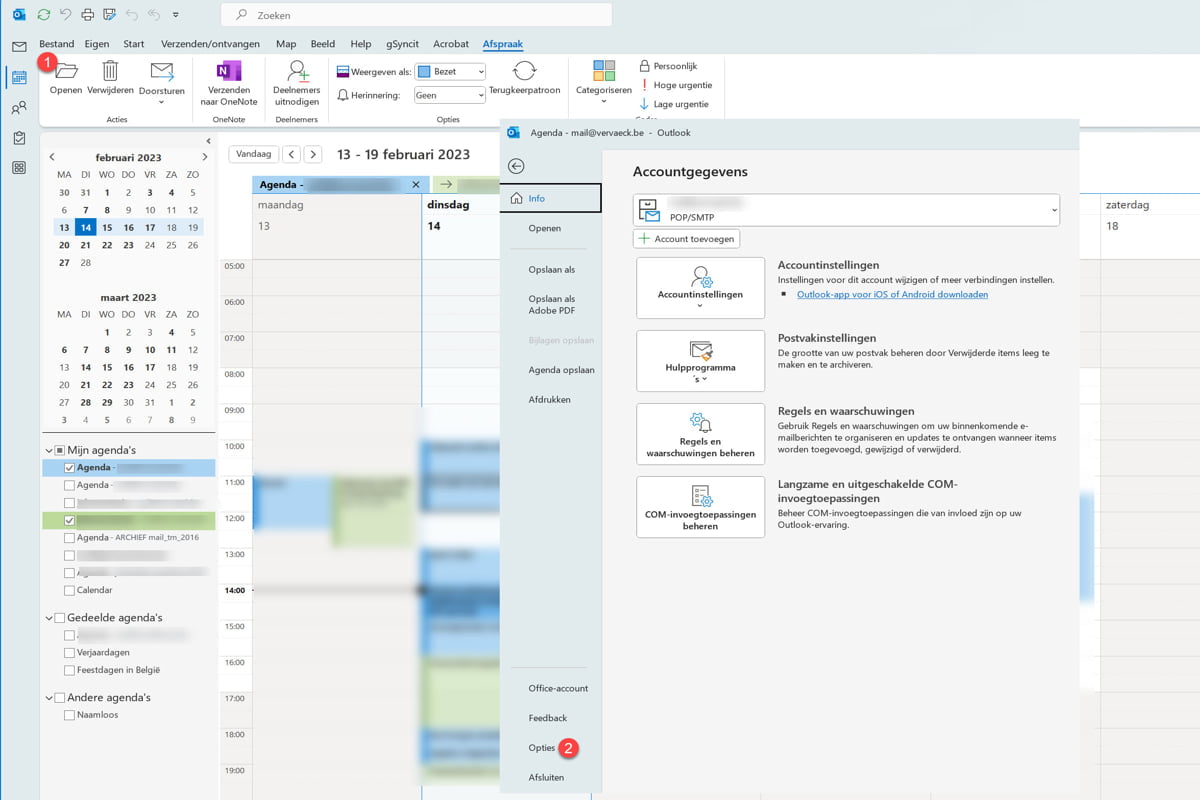 2. Kies "Opties"